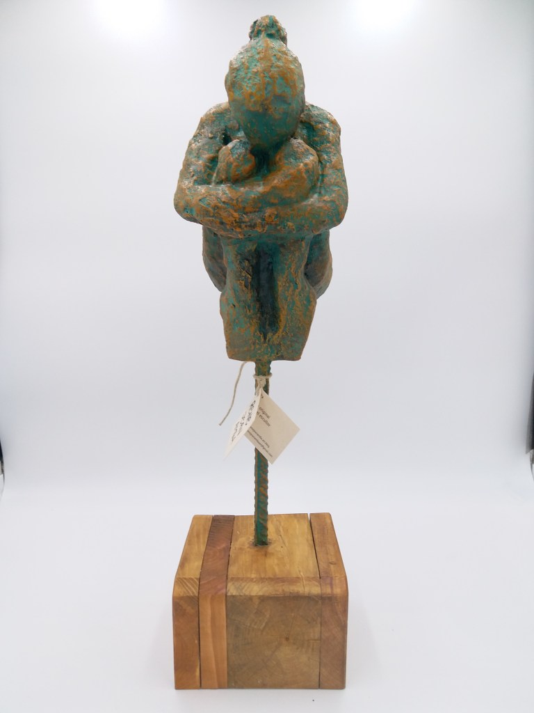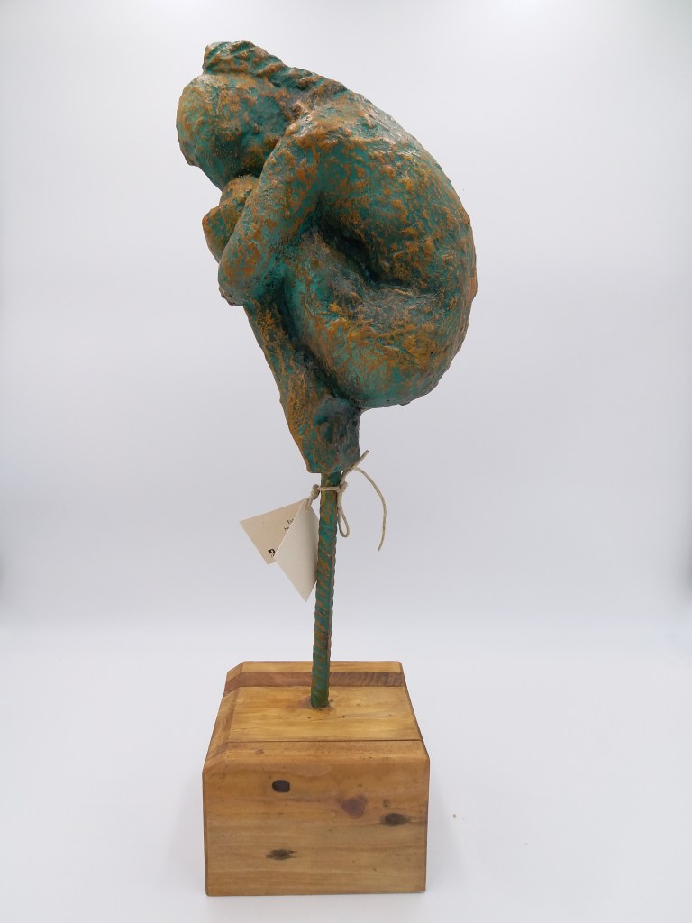 Title: patiencia. resin metal acrylic patina H: 80cm L: 22cm D: 20cm. 2019